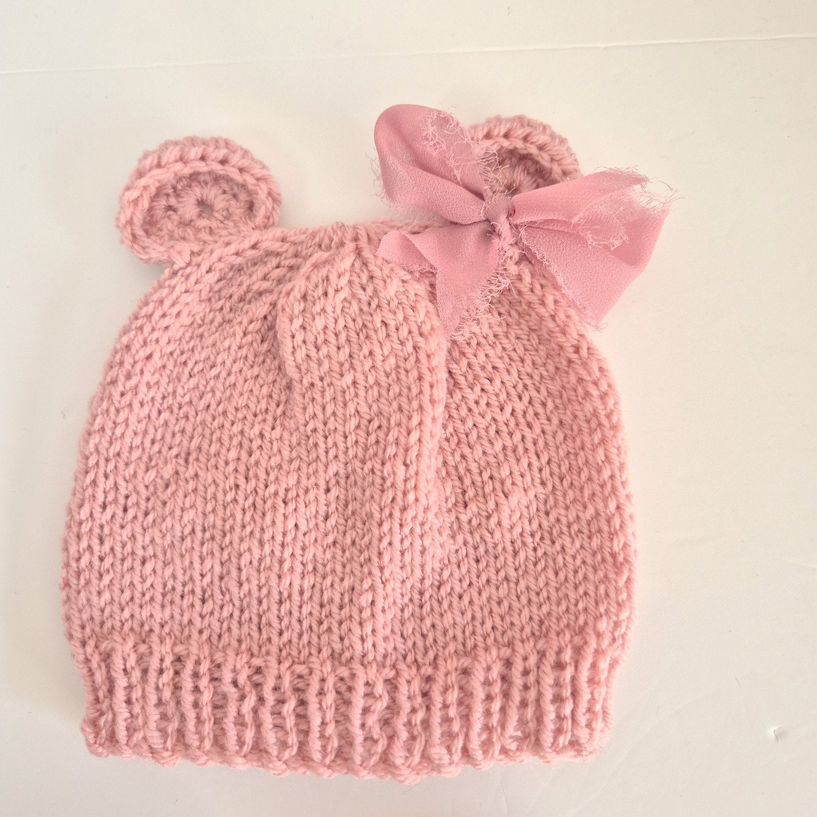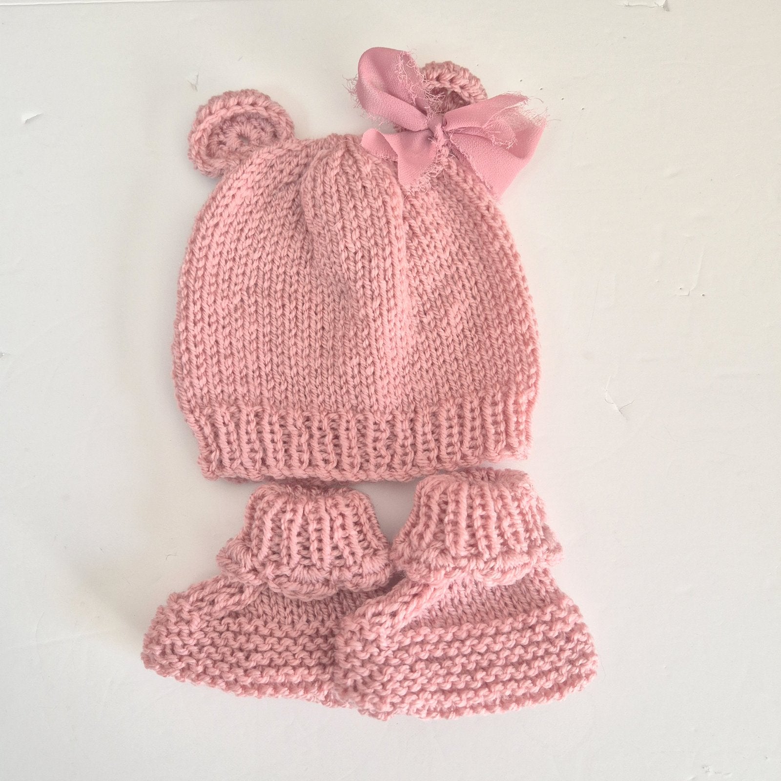 0-3 months Pink Baby Bear Beanie and Bootie set (Ready to Send)