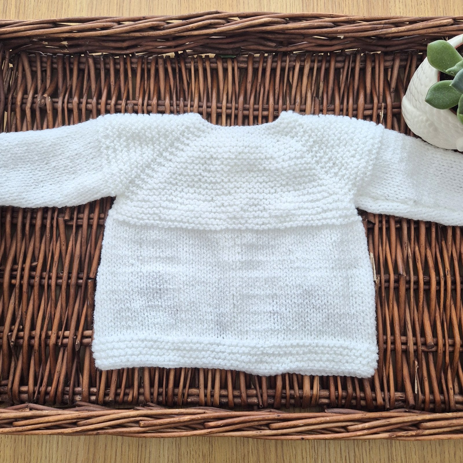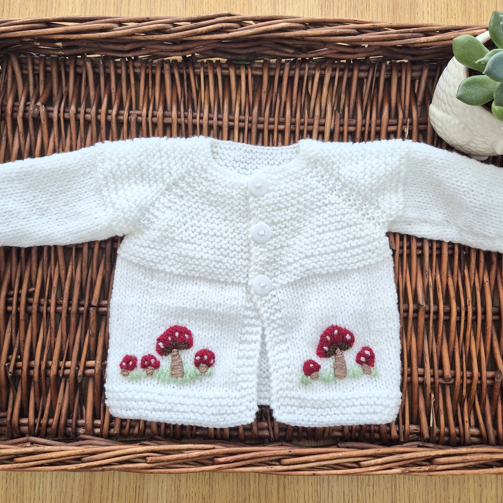 Handknit White Toadstool Baby Cardigan 0-3 months (Ready to Send)