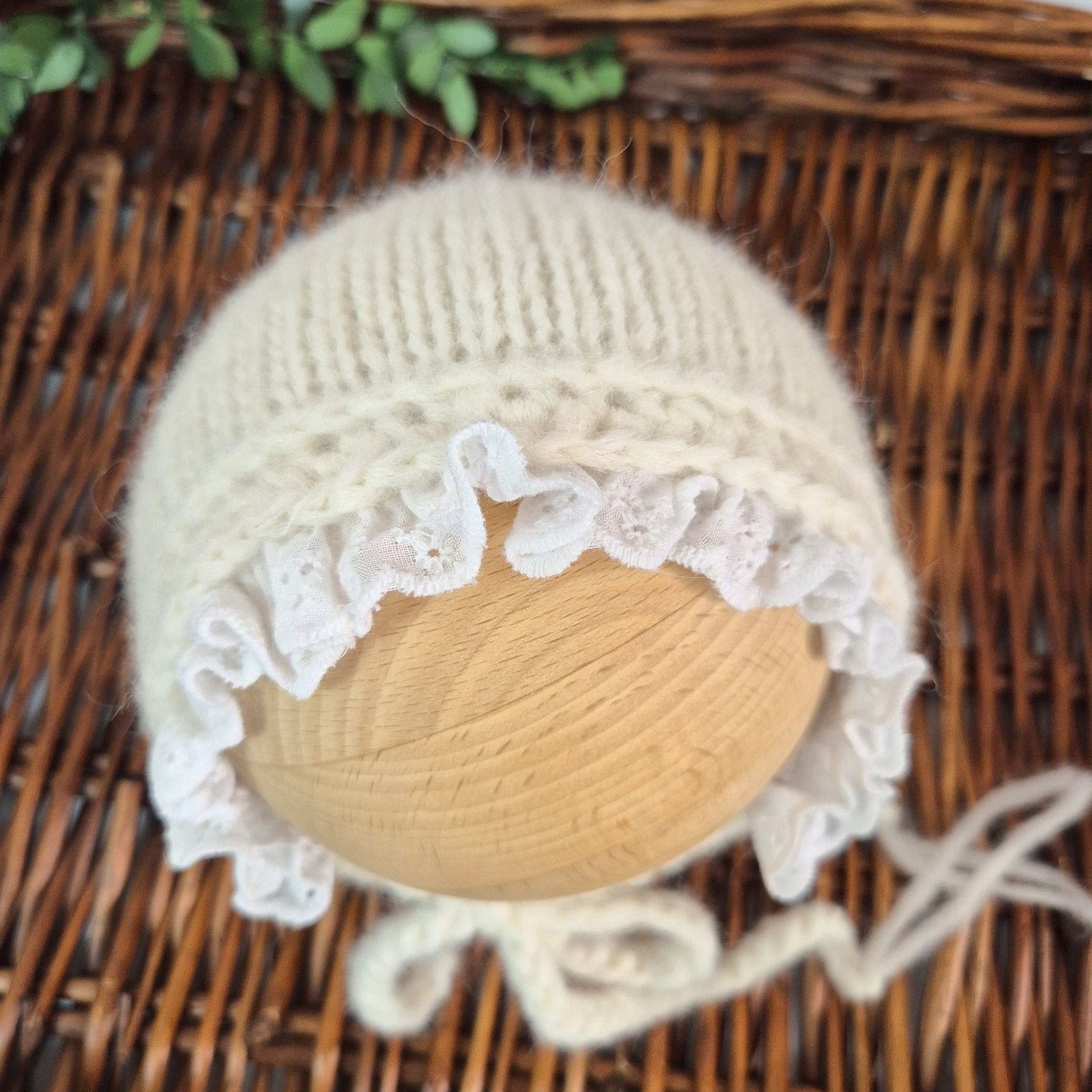 Newborn Baby Girl Cream Pants and Frilly Bonnet Set ( Ready to send)